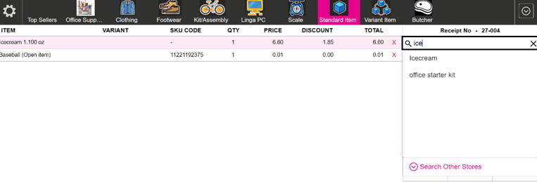 - The Search pane appears to the right. Enter the name of the Retail Item in the search box.