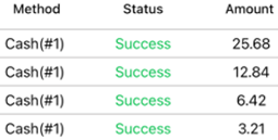 When selecting another split combination for the Balance Due amount, the remaining amount will be split based on the selected split and the value will be displayed below the previous split payment submission.