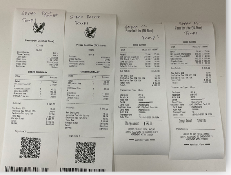 Example: If there is only SPPAX payment on the Receipt, the Service Charge amount will appear under hardcoded name Service Charge. If there are multiple payments, such as SPPAX and MPPG, both Amounts will be added and shown under hardcoded name Service Charge.