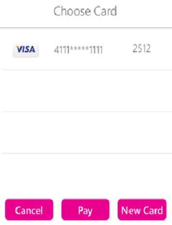 In the future, the same Customer orders and makes payment using same Card. The Choose Card pop-up appears which displays all Cards saved to the Customer's Account.