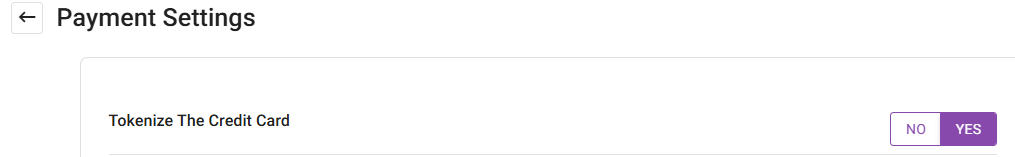 For the Tokenize The Credit Card toggle: