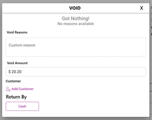 Select a Void Reason or enter a Custom Reason (mandatory).
