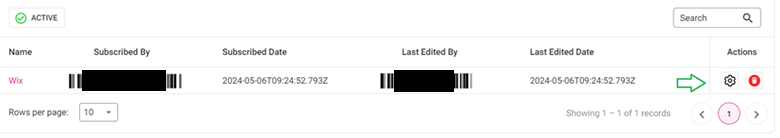 Navigate to the Configurations / Manage Integrations page. For the Wix row: under Actions click the Settings (gear) button to configure the integration.
