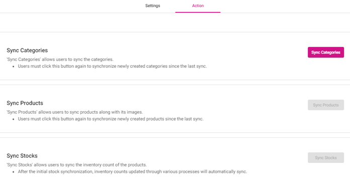 Sync Products - Sync newly created Products and tag the Products under the corresponding Categories.
