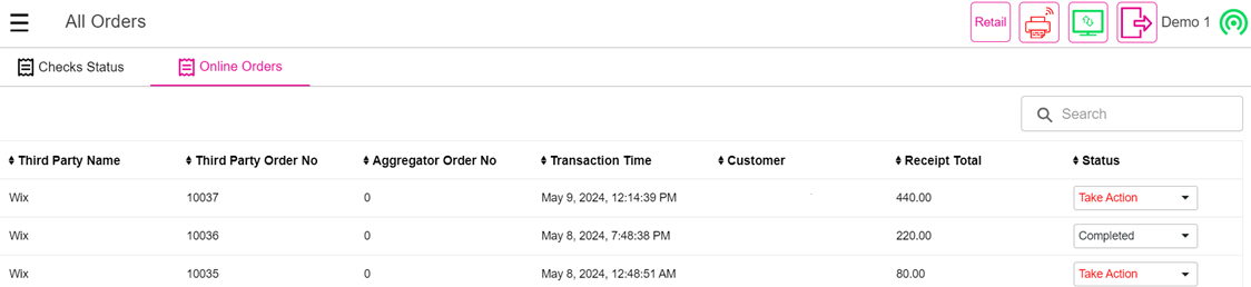 Online Orders placed through Wix storefront and Wix admin portal will be pulled every 15 minutes and displayed under the Online Orders section in POS (Sale History > Online Orders). Inventory will be updated with stock count based on the items and its quantity in the order.